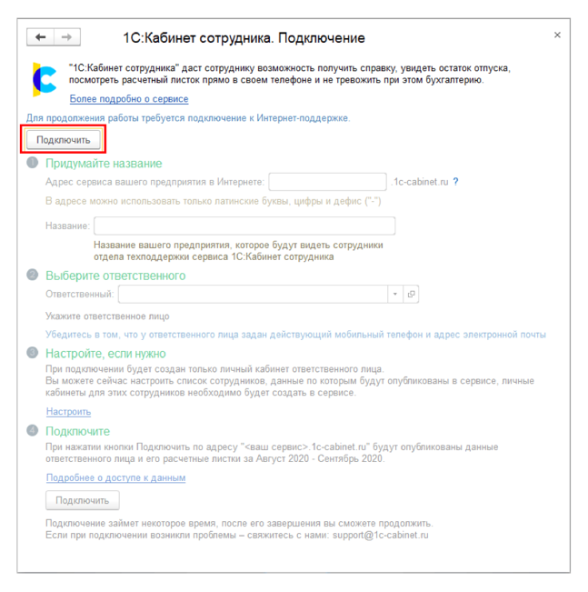Как подключить «1С:Кабинет сотрудника»