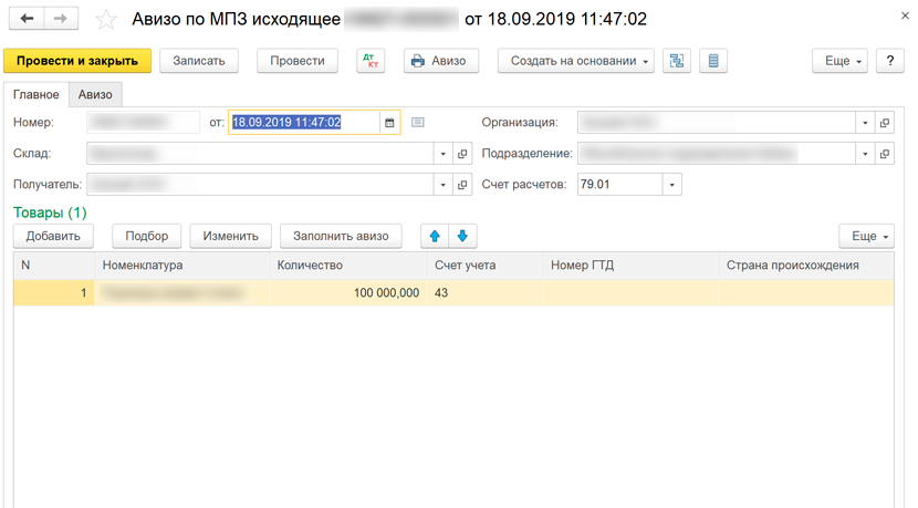 При потребности в наличии бумажного варианта достаточно кликнуть «Авизо». Чтобы переместить МПЗ из обособленного представительства в головной офис, нужен ранее сформированный бланк. Проводится заполнение полей, переставляют отправителя и получателя местами.