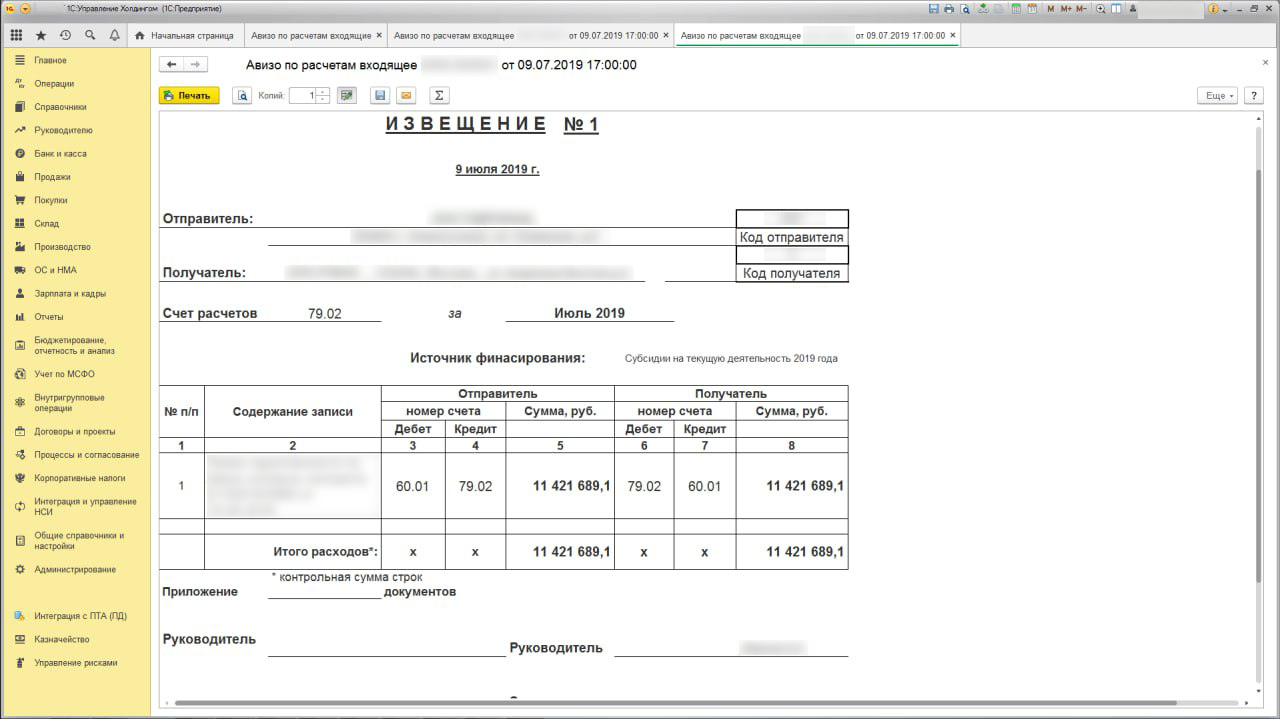 Ключевая функция уведомления по расчетам сфокусирована на перемещении дебиторки и кредиторских долгов, полученных с участием внешних компаний, между главным и обособленным подразделениями. К тому же в одном сообщении допустимо информирование об обоих типах долговых обязательств по разным соглашениям.