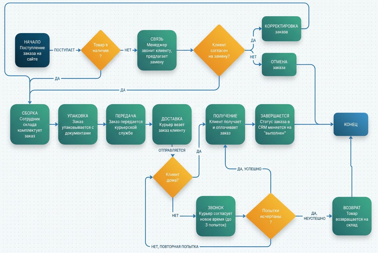 Наличие регламентированных процессов позволяет компании работать предсказуемо, масштабироваться без потери качества и минимизировать хаос в ежедневной деятельности. Каждый сотрудник понимает свою зону ответственности, а руководство получает необходимые инструменты для контроля и управления.