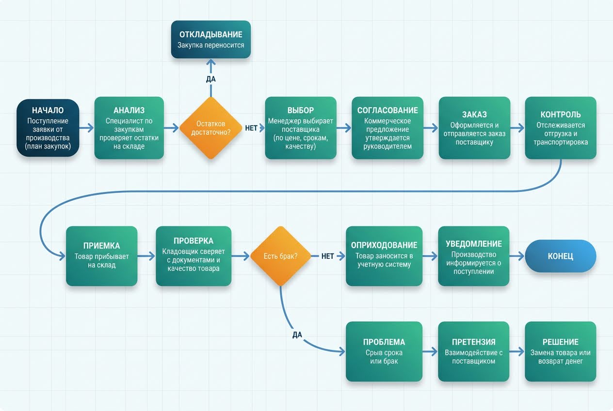 Рис 4. Производство. Процесс «Закупка сырья и материалов»