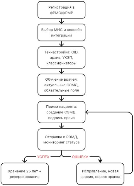 Организация работы МИС с РЭМД — это сквозной бизнес-процесс, объединяющий юридическую регистрацию, техническую настройку, повседневную работу врачей и контрольные процедуры.