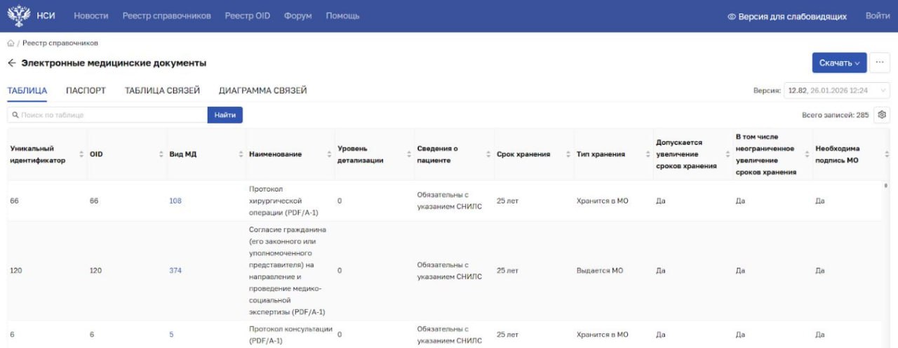 Рис.3. Справочник «Электронные медицинские документы» на портале НСИ