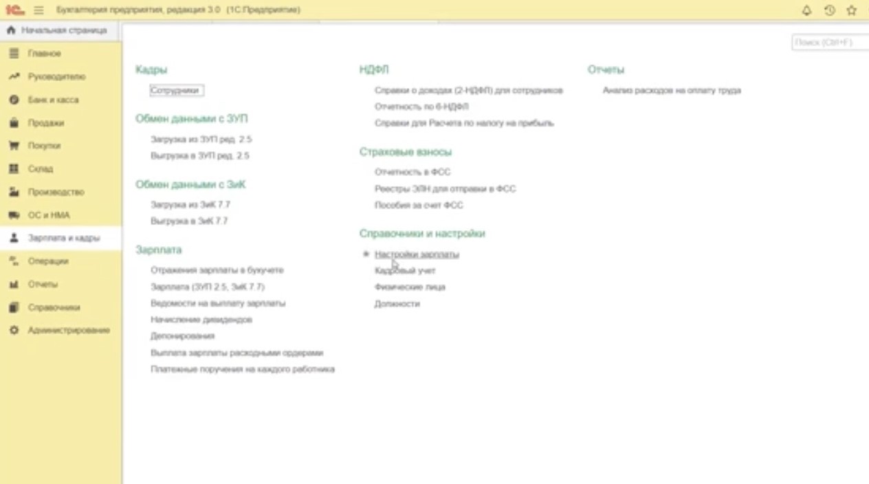 Шаг 4. Перейдите в вашу «1С:Бухгалтерию», откройте раздел «Зарплата и кадры» – «Справочники и настройки» – «Настройки зарплаты» (рис.4).