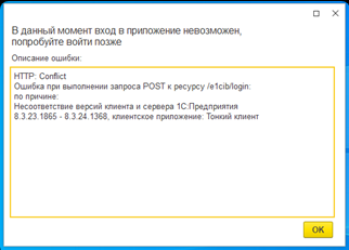 Несоответствие версий платформы и конфигурации блокирует запуск базы данных. Система выдаст сообщение о невозможности открытия файла базы данных. Необходимо обновить платформу «1C» на клиентских местах пользователей или откатить версию базы до совместимого релиза конфигурации обратно.