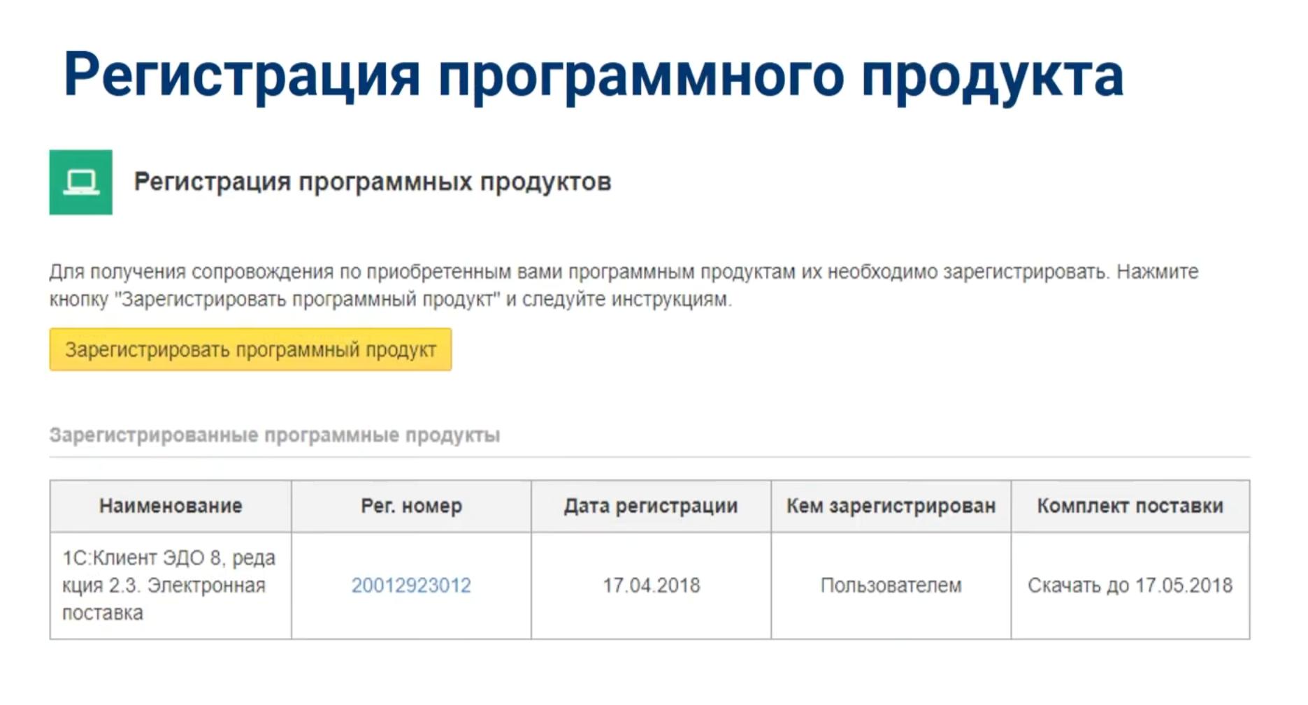 Вы увидите кнопку «Зарегистрировать программный продукт». Нажмите ее.