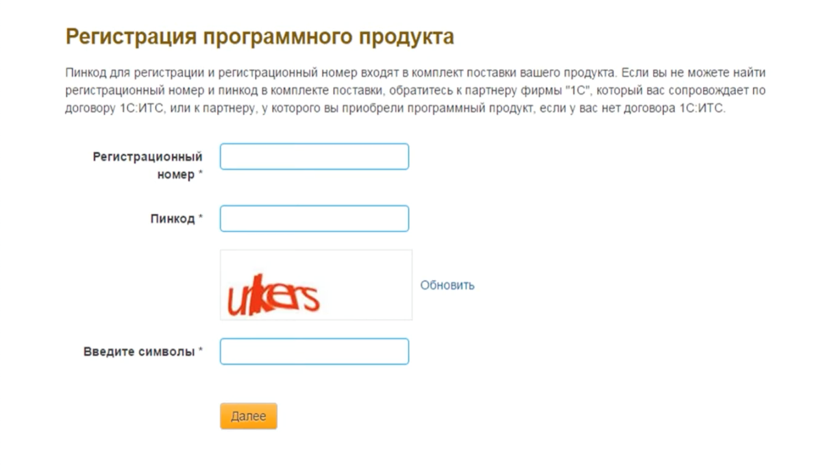Регистрация продукта «1С» на портале ИТС