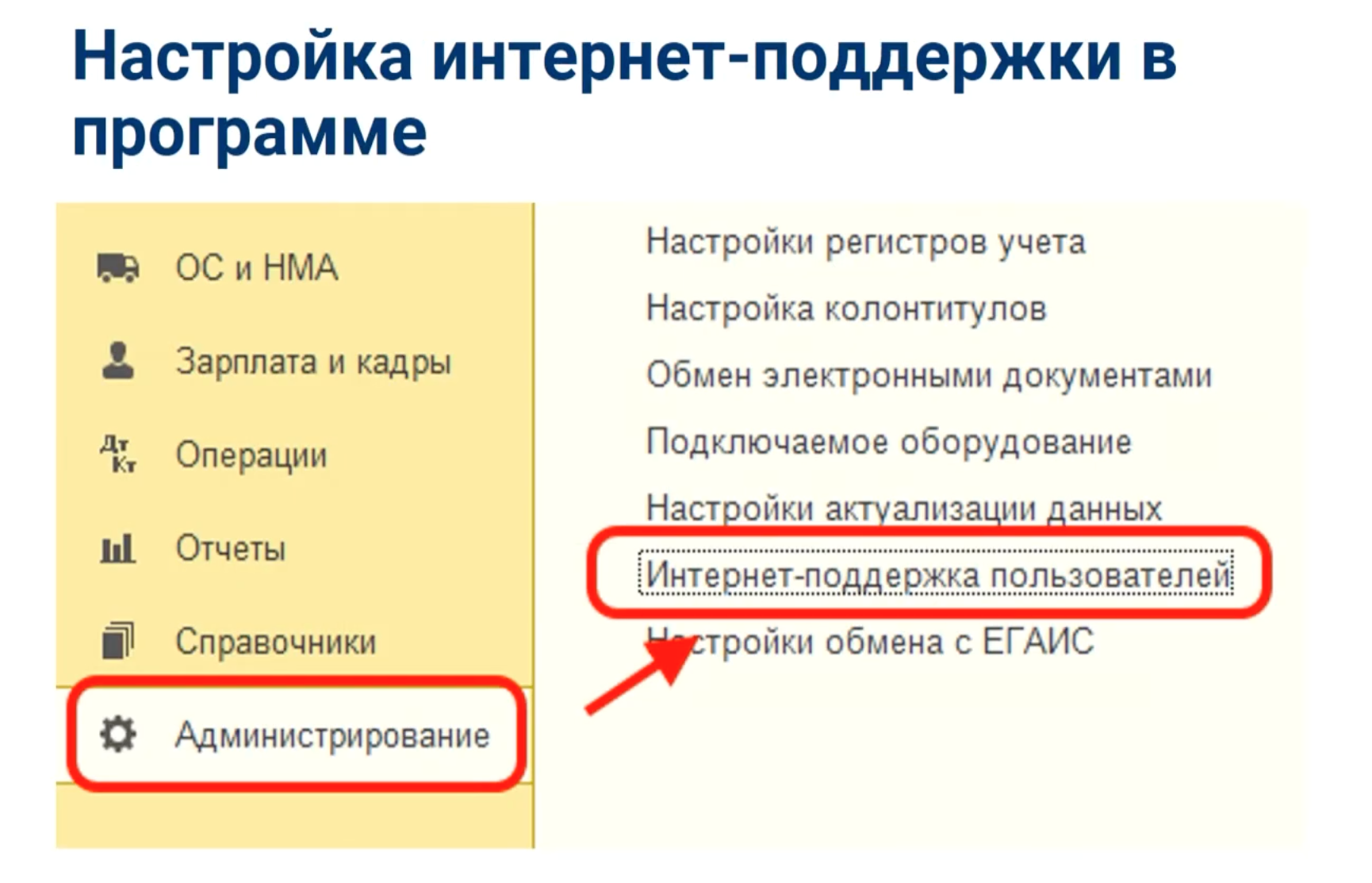 Рис.5. Подключение интернет-поддержки в программе «1С»