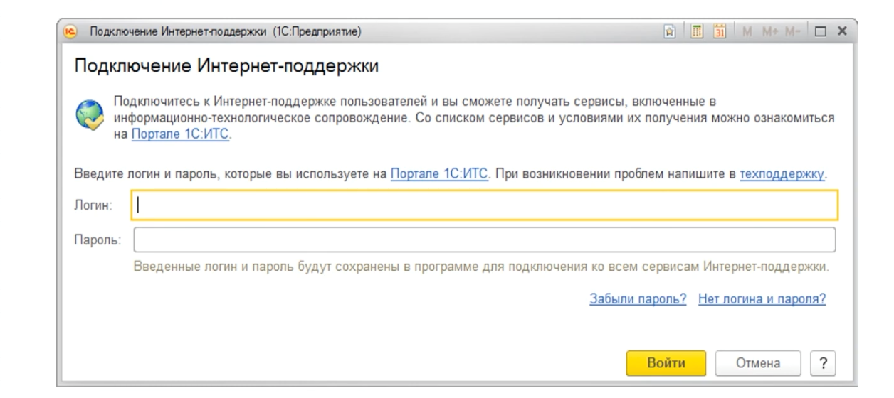 Дело в том, что сама программа «1С» ничего не знает о ваших регистрациях на портале. Ей нужно дать команду. Для этого в программу вводятся логин и пароль от портала. Этот процесс называется «подключить интернет-поддержку».