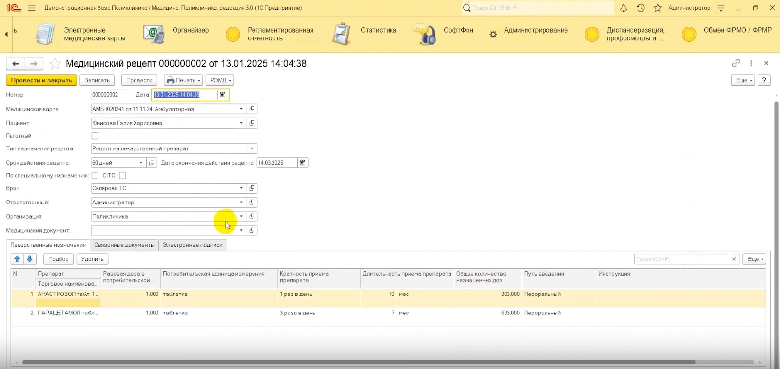 - После приема пациента врач оформляет электронный медицинский документ прямо в своей информационной системе.