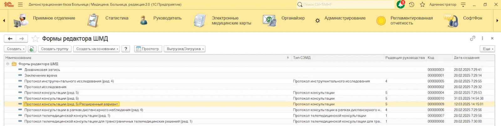 Рис.2. Форма редактора ШМД в «1С:Медицина.Больница»